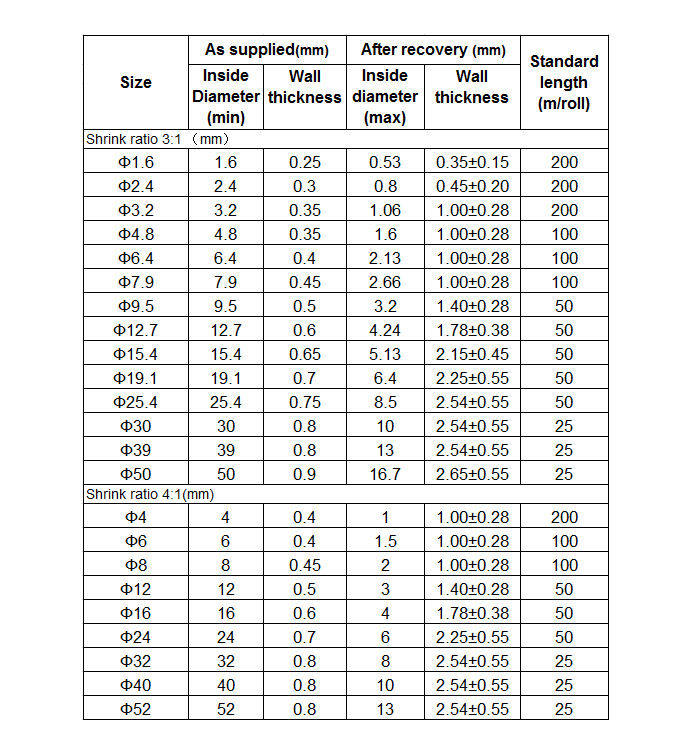 High shrink ratio of 3:1, 4:1 can be used for insulation and sealing protection of irregularly shaped objects